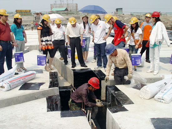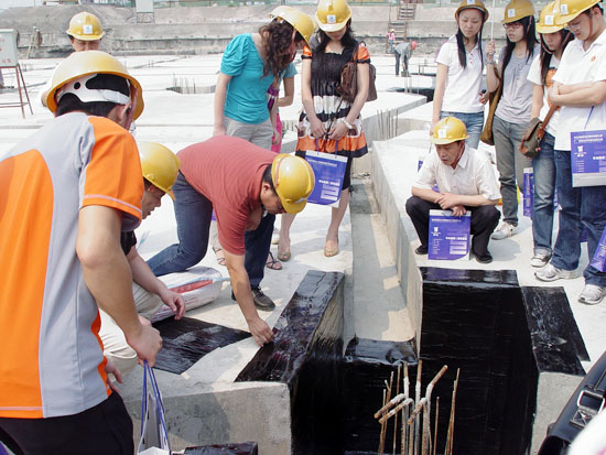 青龍公司自粘卷材預(yù)鋪反粘施工工藝的大量應(yīng)用,徹底顛覆了傳統(tǒng)材料直接施工于墊層的工藝。如番禺祈福新村,中山新中醫(yī)院的地下室防水工程,皆是采用預(yù)鋪反粘。在中醫(yī)院新址地下室施工過程中,我公司先后組織了開發(fā)商、設(shè)計(jì)師、建筑單位等大批人員進(jìn)行現(xiàn)場觀摩學(xué)習(xí),了解這一先進(jìn)工藝,促進(jìn)預(yù)鋪反粘的進(jìn)一步推廣。