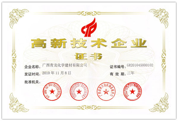 近日,廣西青龍國家高新技術(shù)企業(yè)證書已經(jīng)下達(dá)。如下圖