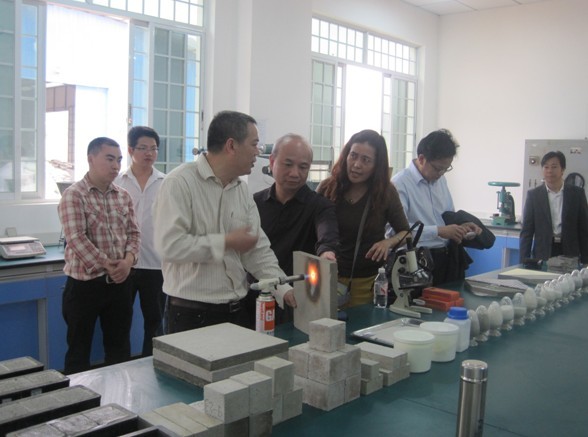 EVB保溫砂漿、防水卷材等幾大生產(chǎn)線及產(chǎn)品檢測(cè)實(shí)驗(yàn)室。在參觀過程中他們對(duì)各生產(chǎn)線現(xiàn)場(chǎng)管理,特別是對(duì)改造一新的卷材生產(chǎn)線進(jìn)行了熱切地詢問,生產(chǎn)部相關(guān)人員均一一進(jìn)行了講解。