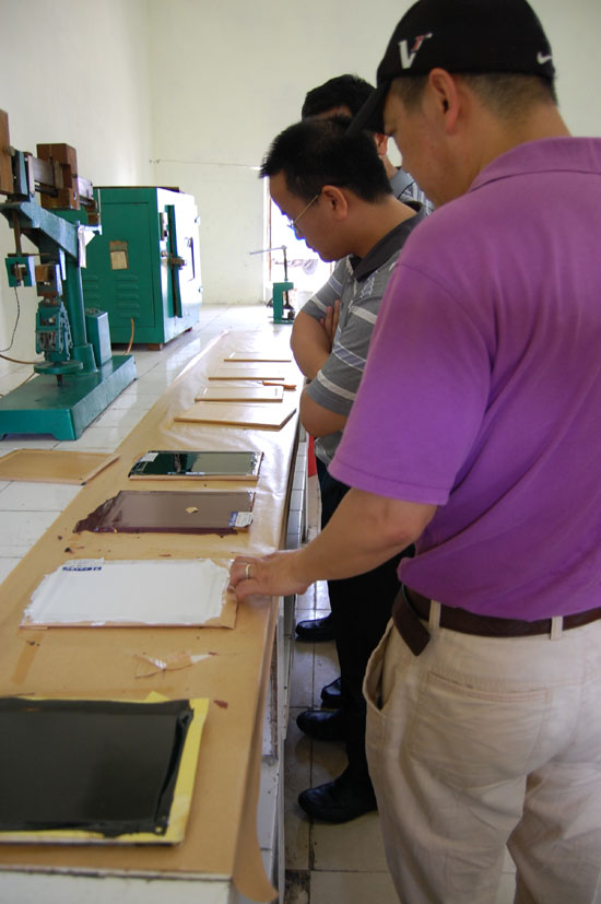 2011年6月2日上午,來自深圳市建筑工務署的領(lǐng)導與市政府采購中心考察人員在青龍董事長宋敦清等相關(guān)領(lǐng)導的陪同下參觀了廣西青龍工廠EVB生產(chǎn)車間、防水卷材生產(chǎn)車間、技術(shù)研發(fā)實驗室、產(chǎn)品展示廳等,并認真聽了廣西青龍董事長宋敦清的匯報,介紹了青龍公司近年來跨越式發(fā)展取得的成就,特別是生產(chǎn)規(guī)模、生產(chǎn)秩序、質(zhì)量保障體系,重大工程材料供應等工作情況。