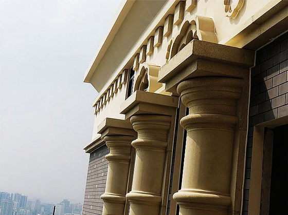 青龍(集團(tuán))公司集產(chǎn)品開發(fā)、生產(chǎn)、建筑藝術(shù)裝飾于一體,近年來,憑借著雄厚的技術(shù)力量、齊全的生產(chǎn)設(shè)備,公司生產(chǎn)出包括飾線、羅馬柱、窗套、檐花、欄河花瓶、浮雕等一系列極盡裝飾美感的水泥外墻裝飾產(chǎn)品,被廣泛地應(yīng)用在各種高檔樓盤當(dāng)中,成為了它們不可缺少的伴侶。