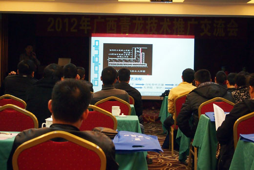 2012年11月8日,龍行天下之青龍建材防水技術(shù)交流會(huì)柳州站在柳州市金瑞酒店隆重召開。會(huì)議由青龍建材防水保溫技術(shù)總工程師徐新生、廣西青龍化學(xué)建材有限公司原廠長(zhǎng)黎世鷹任主講,共有50余人參加。