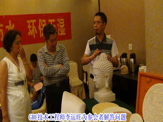 廣西青龍GRC技術(shù)工程師李運(yùn)旺為參會(huì)者重點(diǎn)介紹GRC歐式構(gòu)件生產(chǎn)、技術(shù)、前景、使用范圍等內(nèi)容,通過現(xiàn)場(chǎng)做產(chǎn)品介紹和圖片展示讓更多的設(shè)計(jì)師對(duì)產(chǎn)品特點(diǎn)及應(yīng)用有了進(jìn)一步的了解。設(shè)計(jì)師們認(rèn)真聽取產(chǎn)品介紹,并積極發(fā)表自己的看法,現(xiàn)場(chǎng)氣氛活躍。