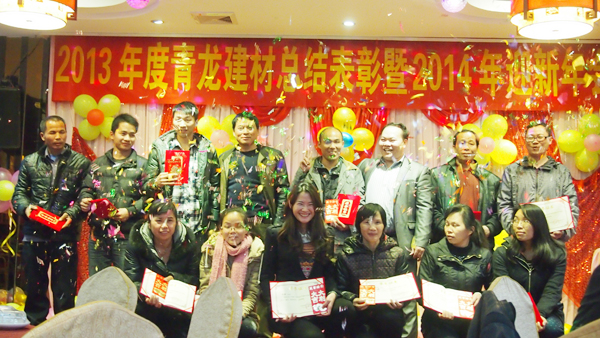 “青龍集團(tuán)廣西化學(xué)建材2013年度總結(jié)表彰暨2014年迎新年會(huì)”給予廣西青龍員工莫大的榮譽(yù)感和責(zé)任心。這是一場(chǎng)團(tuán)結(jié)快樂(lè)的盛會(huì),不僅展示了全體員工健康積極向上的激情風(fēng)貌,也展現(xiàn)了全體同仁的團(tuán)結(jié)友愛(ài),更傳達(dá)青龍集團(tuán)對(duì)2014年再創(chuàng)輝煌,再創(chuàng)佳績(jī)的信心!