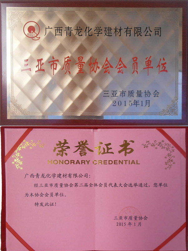 青龍公司榮獲"三亞質(zhì)量協(xié)會"會員單位