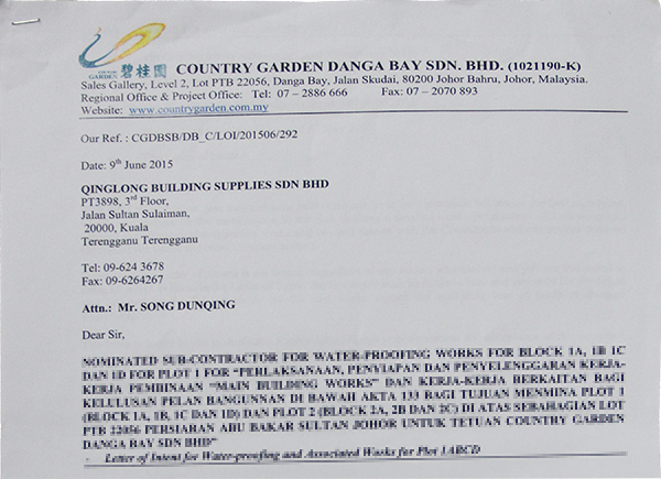 青龍集團(tuán)營銷總監(jiān)賀先生表示,此次競(jìng)標(biāo)碧桂園馬來西亞金海灣防水項(xiàng)目共有多家防水企業(yè),經(jīng)過激烈角逐,青龍公司與東方雨虹等四家防水企業(yè)最終脫穎而出,且青龍與東方雨虹分別獲得防水面積較大的兩個(gè)項(xiàng)目。該防水項(xiàng)目的最終落實(shí)不僅是青龍集團(tuán)開拓國際市場(chǎng)的又一成功案例,也表明了青龍防水材料防水效果顯著,技術(shù)實(shí)力強(qiáng)勁,得到了國內(nèi)外客戶的高度肯定。