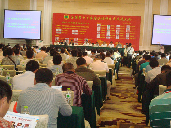 在接下來(lái)的技術(shù)交流環(huán)節(jié)上,共有19名代表和專家登臺(tái)作了演講,演講內(nèi)容主要圍繞各類乳液的性能及應(yīng)用、TPO高分子卷材應(yīng)用、耐根穿刺卷材研發(fā)及應(yīng)用、丁基橡膠自粘卷材的特性與應(yīng)用、噴涂速凝橡膠瀝青防水涂料技術(shù)及應(yīng)用、防水堵漏工程的加強(qiáng)補(bǔ)固、高起點(diǎn)的防水材料生產(chǎn)基地、中小防水企業(yè)市場(chǎng)渠道策略等先進(jìn)技術(shù)和管理經(jīng)驗(yàn)。